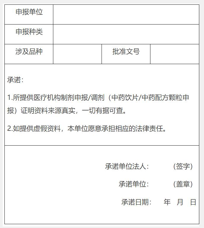 (中药饮片/中药配方颗粒申报)报送资料承诺书