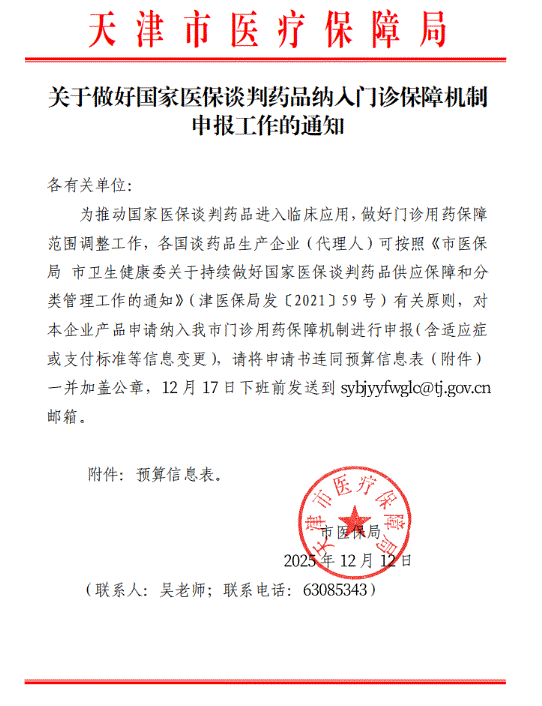 【天津】天津市关于做好国家医保谈判药品纳入门诊保障机制申报工作的通知