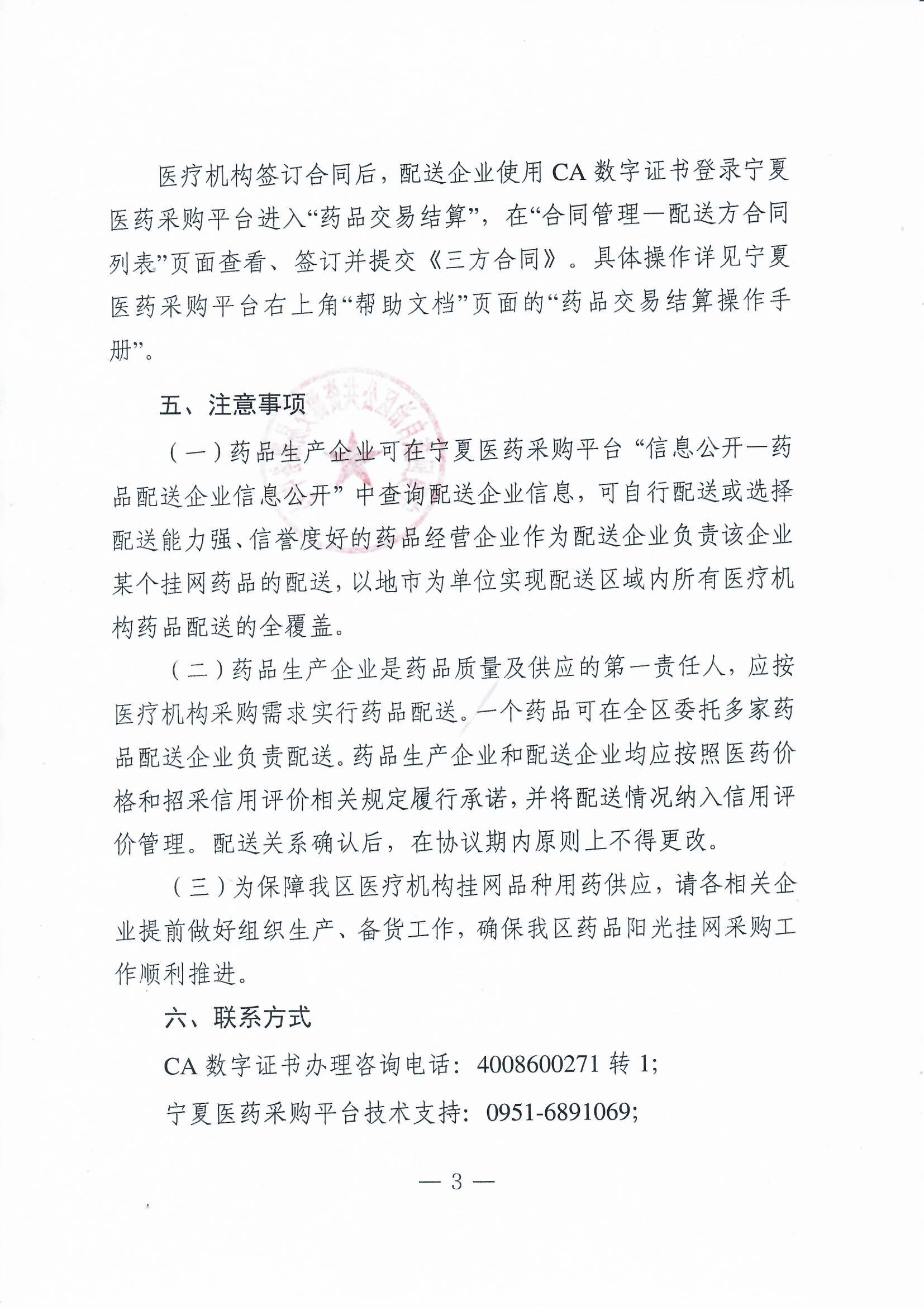 【宁夏】关于开展宁夏回族自治区药品阳光挂网三季度(第一批)配送关系维护及购销三方合同签订工作的通知