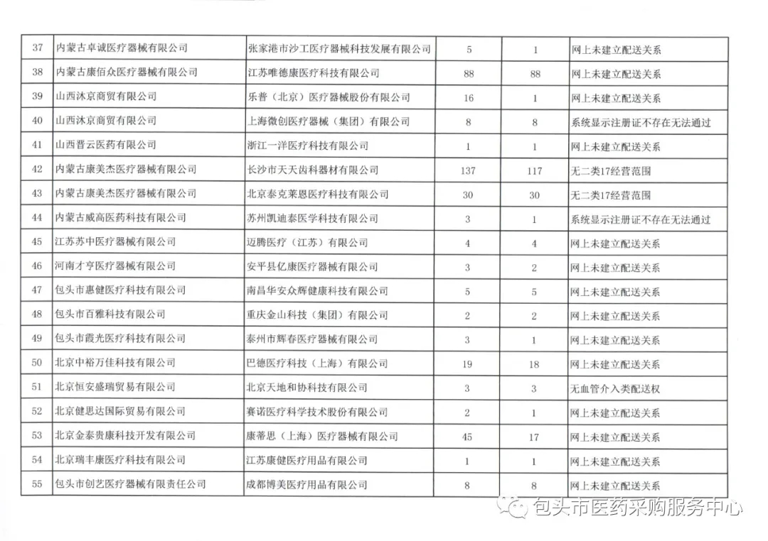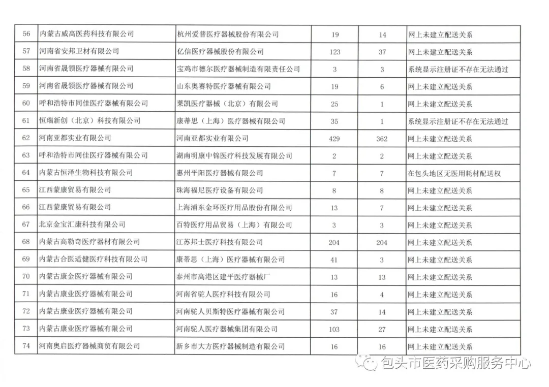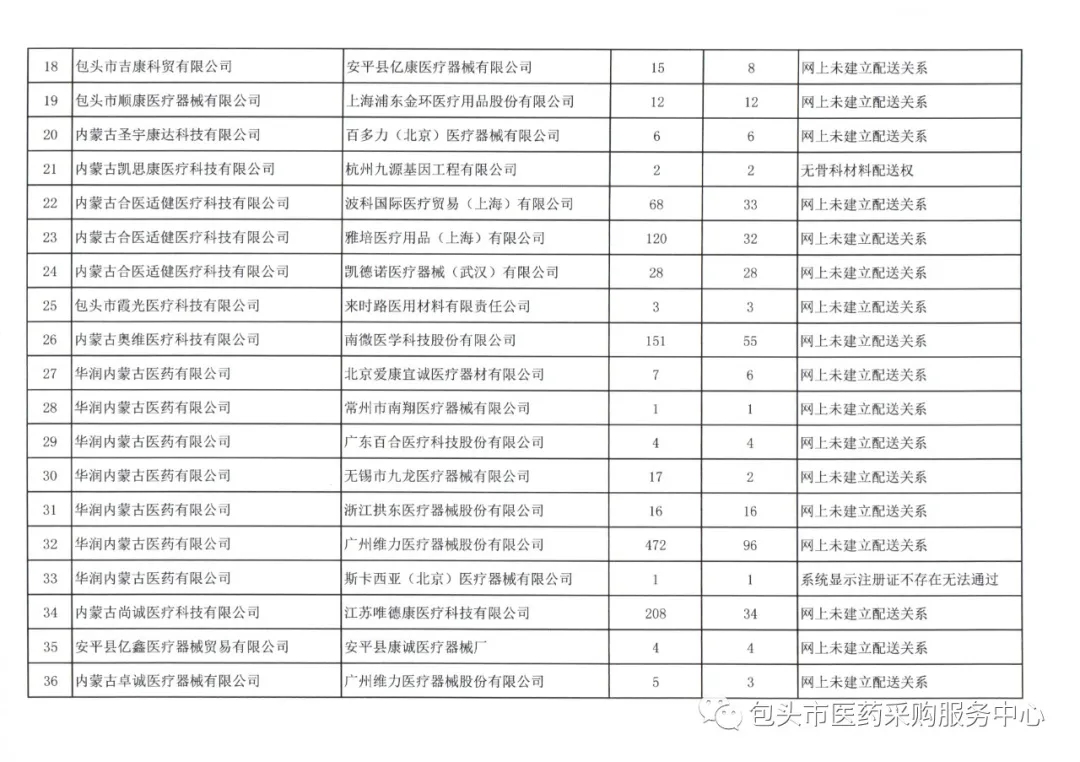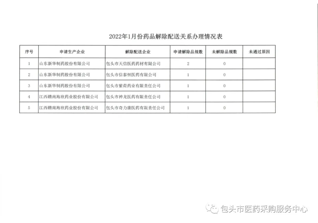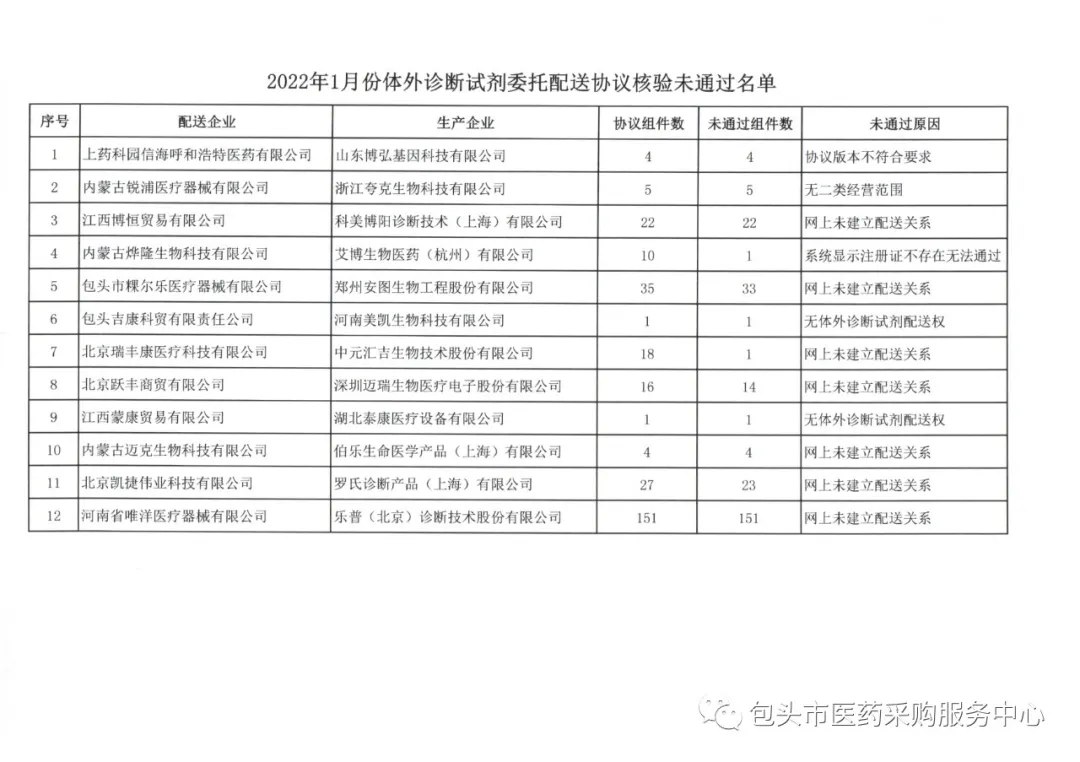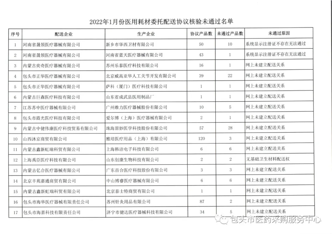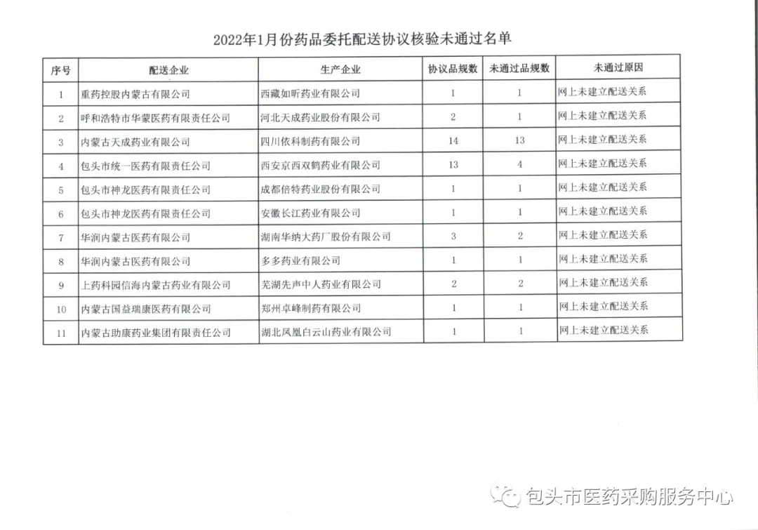 【包头】内蒙古自治区包头市1月份委托配送协议核验未通过名单(20220113)