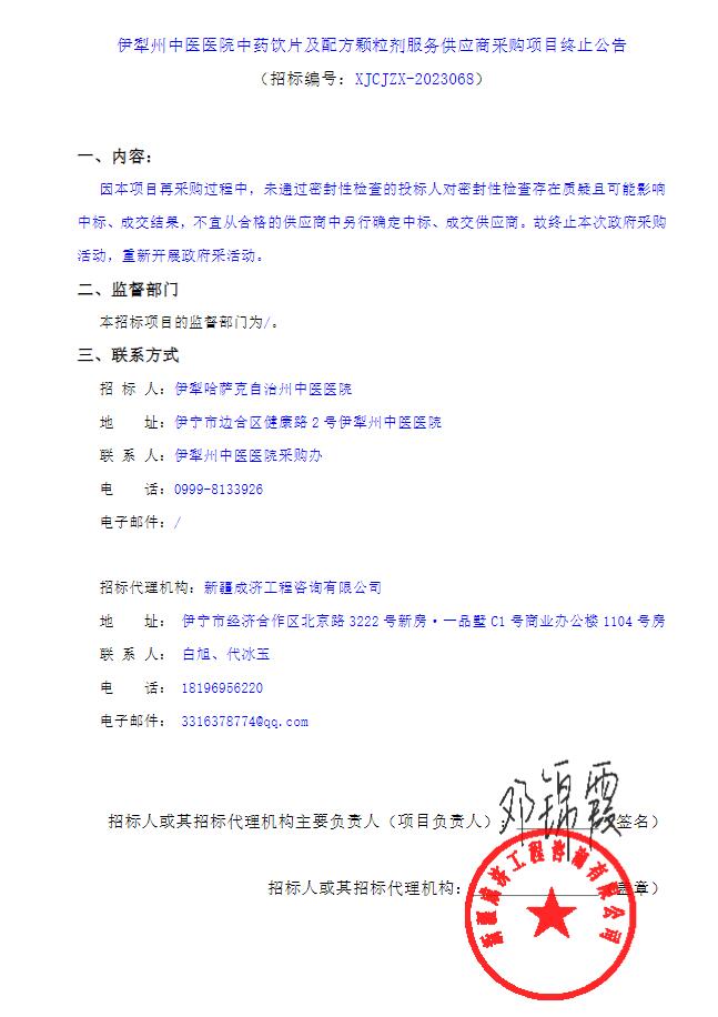 【伊犁州中医医院】新疆维吾尔自治区伊犁州中医医院中药饮片及配方颗粒剂服务供应商采购项目终止公告