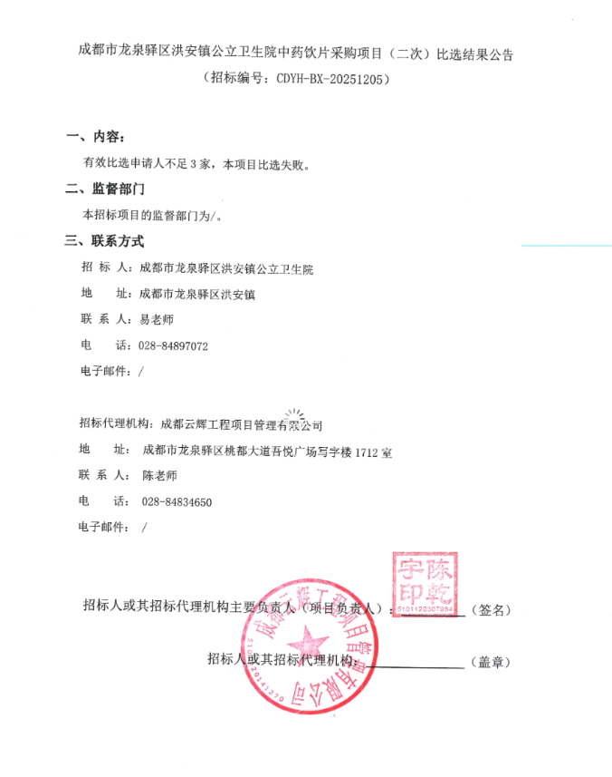 【成都市龙泉驿区洪安镇公立卫生院】四川省成都市龙泉驿区洪安镇公立卫生院中药饮片采购项目(二次)比选结果公告