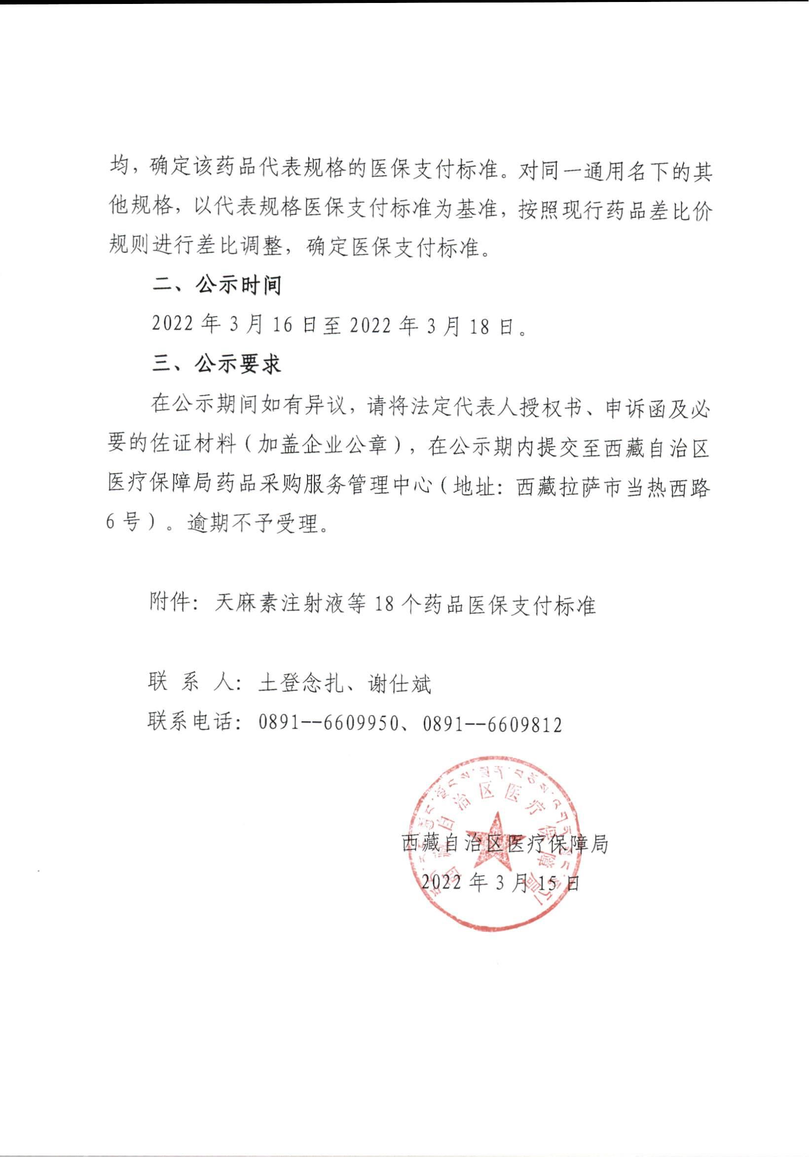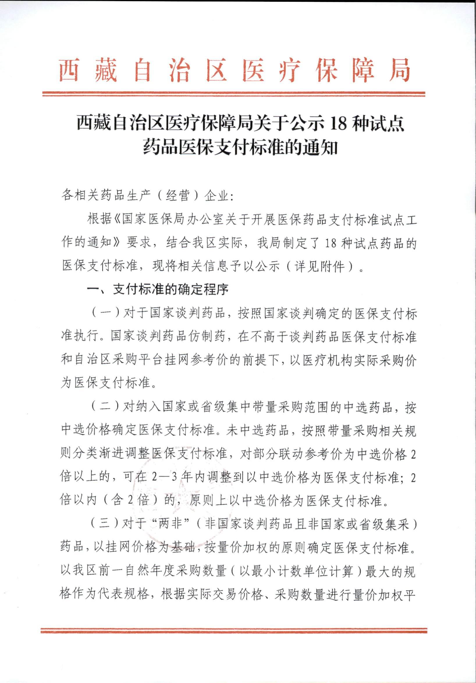 【西藏】西藏自治区医疗保障局关于公示18种试点药品医保支付标准的通知