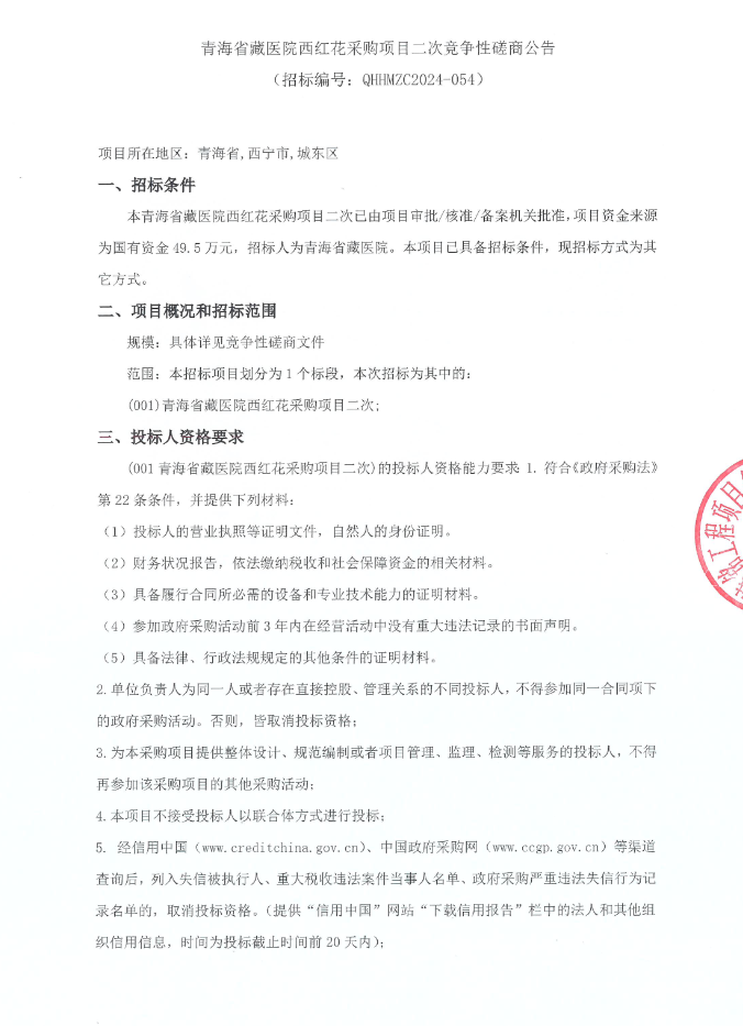 【青海省藏医院】青海省藏医院西红花采购项目二次竞争性磋商公告
