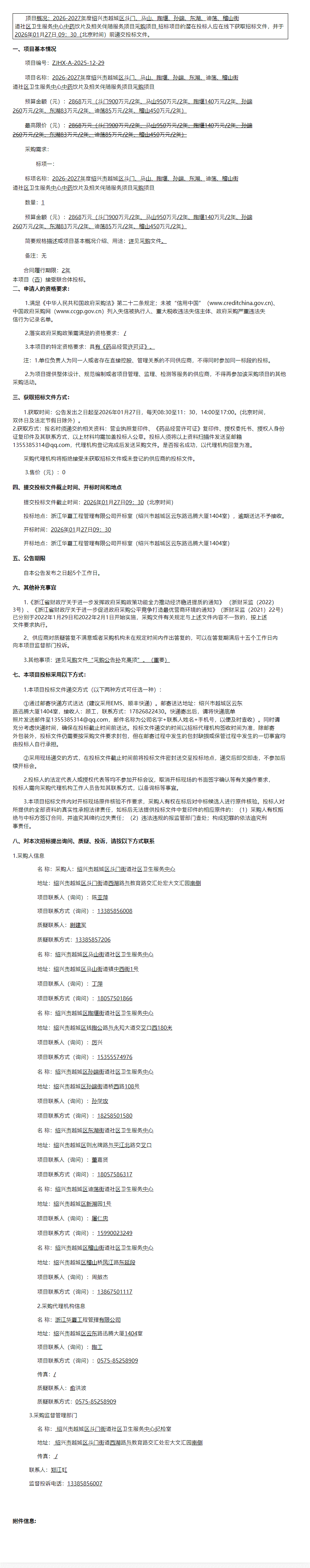 【绍兴市越城区斗门街道社区卫生服务中心】浙江省2026-2027年度绍兴市越城区斗门、马山、陶堰、孙端、东湖、迪荡、稽山街道社区卫生服务中心中药饮片及相关伴随服务项目采购项目的采购公告
