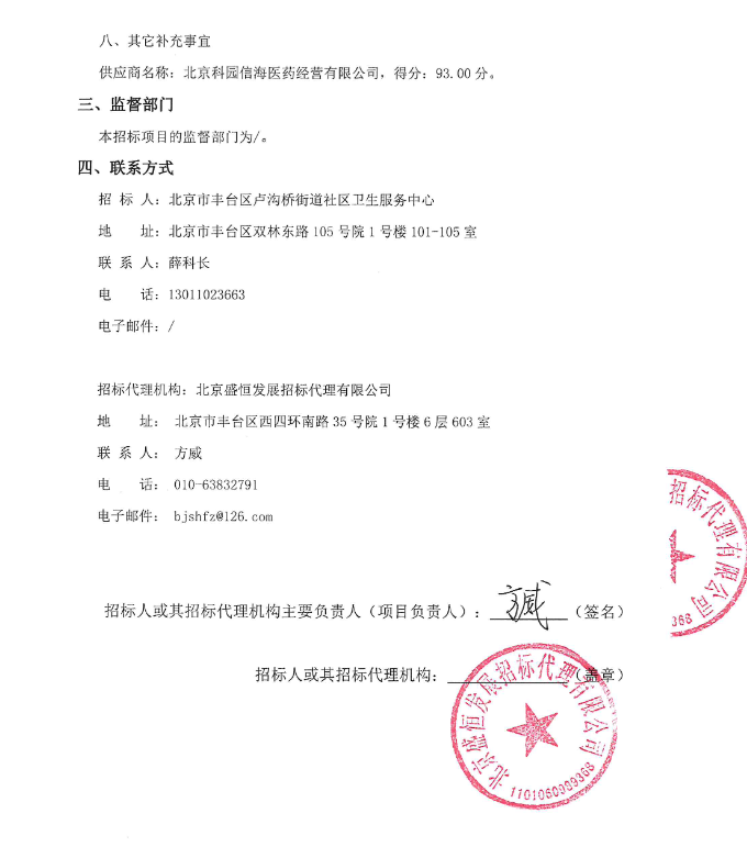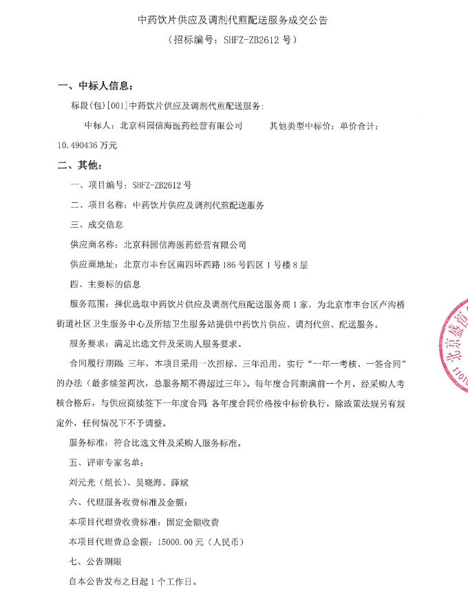【北京市丰台区卢沟桥街道社区卫生服务中心】北京市丰台区卢沟桥街道社区卫生服务中心中药饮片供应及调剂代煎配送服务成交公告