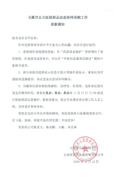 【玉溪】云南省玉溪市公立医院药品动态挂网采购工作更新通知
