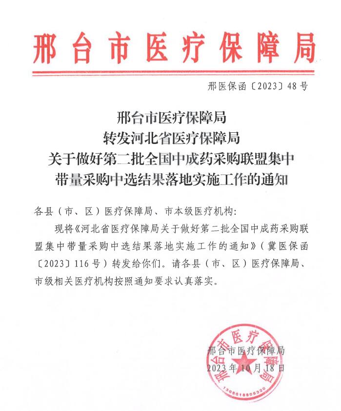 【邢台】关于做好第二批全国中成药采购联盟集中带量采购中选结果落地实施工作的通知