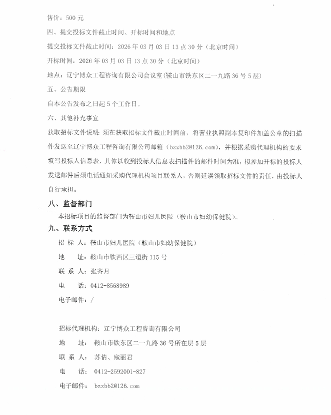 所属项目:辽宁省鞍山市妇儿医院(鞍山市妇幼