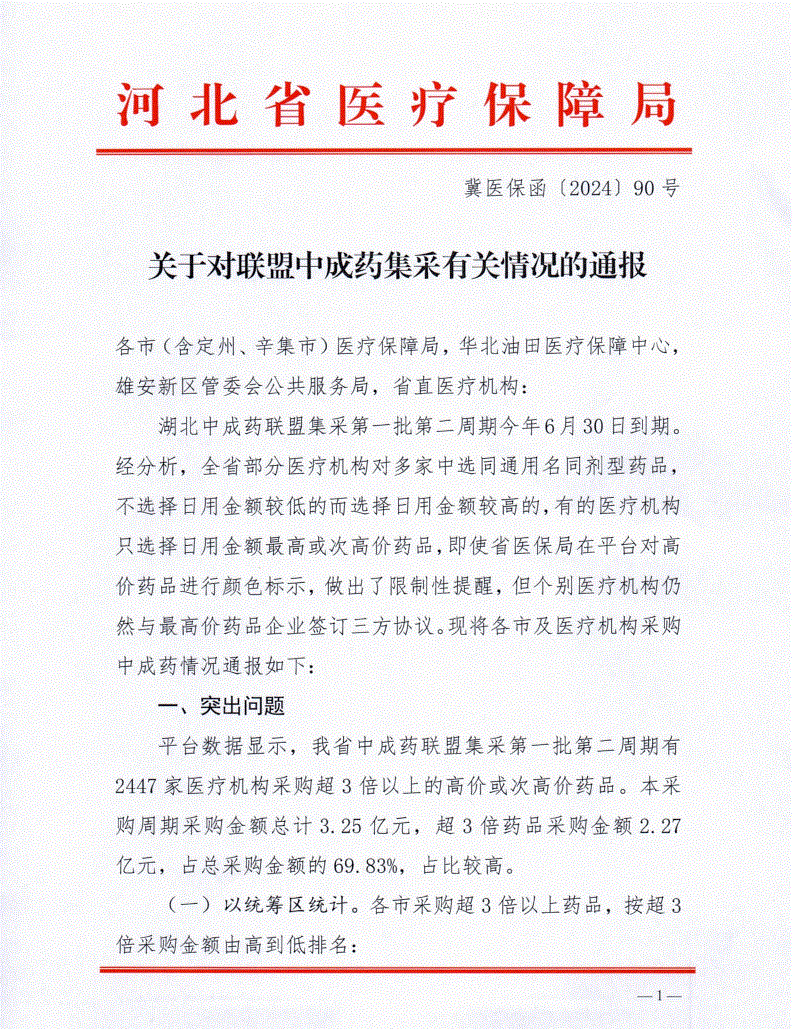 【河北】河北省关于对联盟中成药集采有关情况的通报