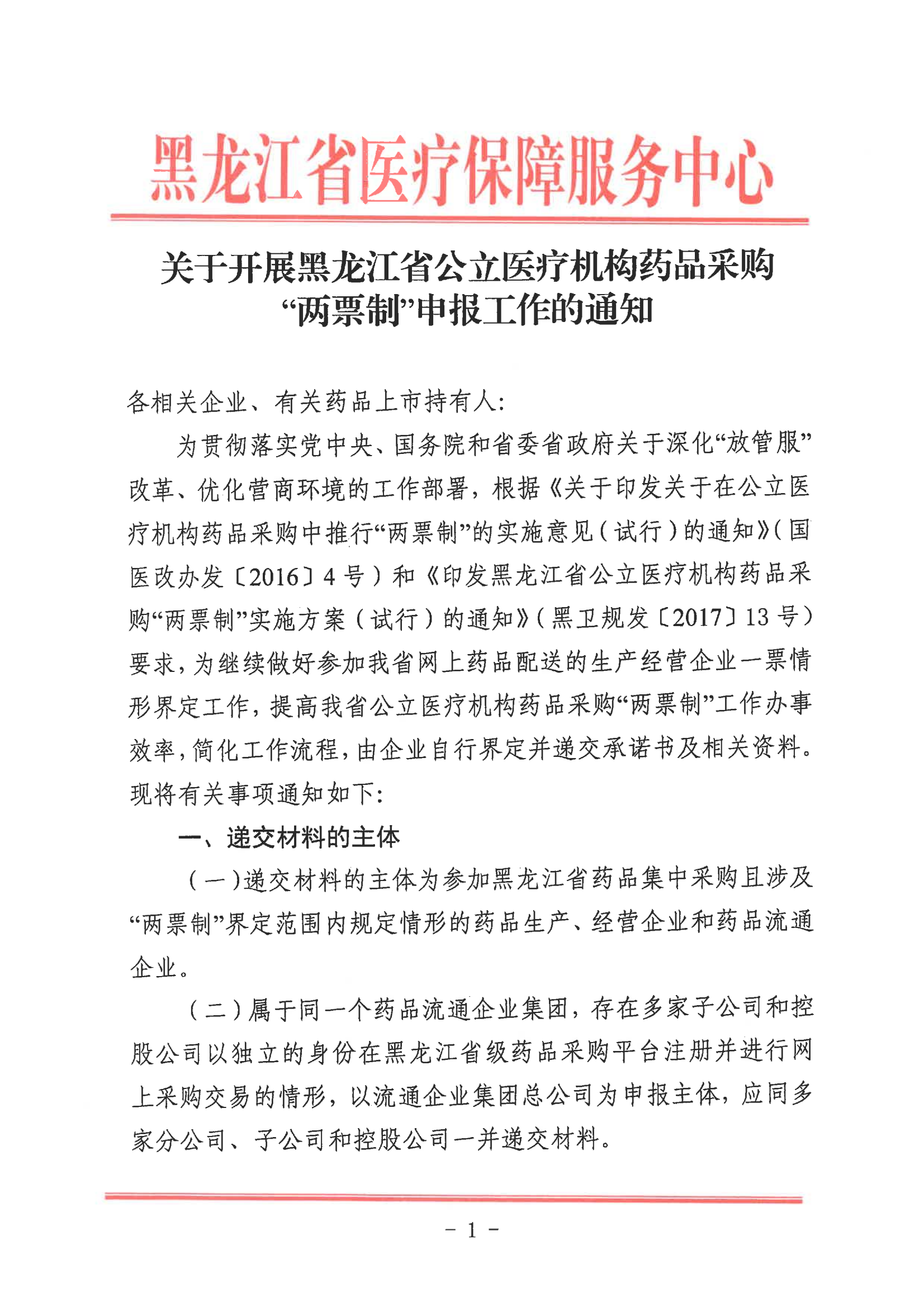 【黑龙江】关于开展黑龙江省公立医疗机构药品采购“两票制”申报工作的通知(20250214)