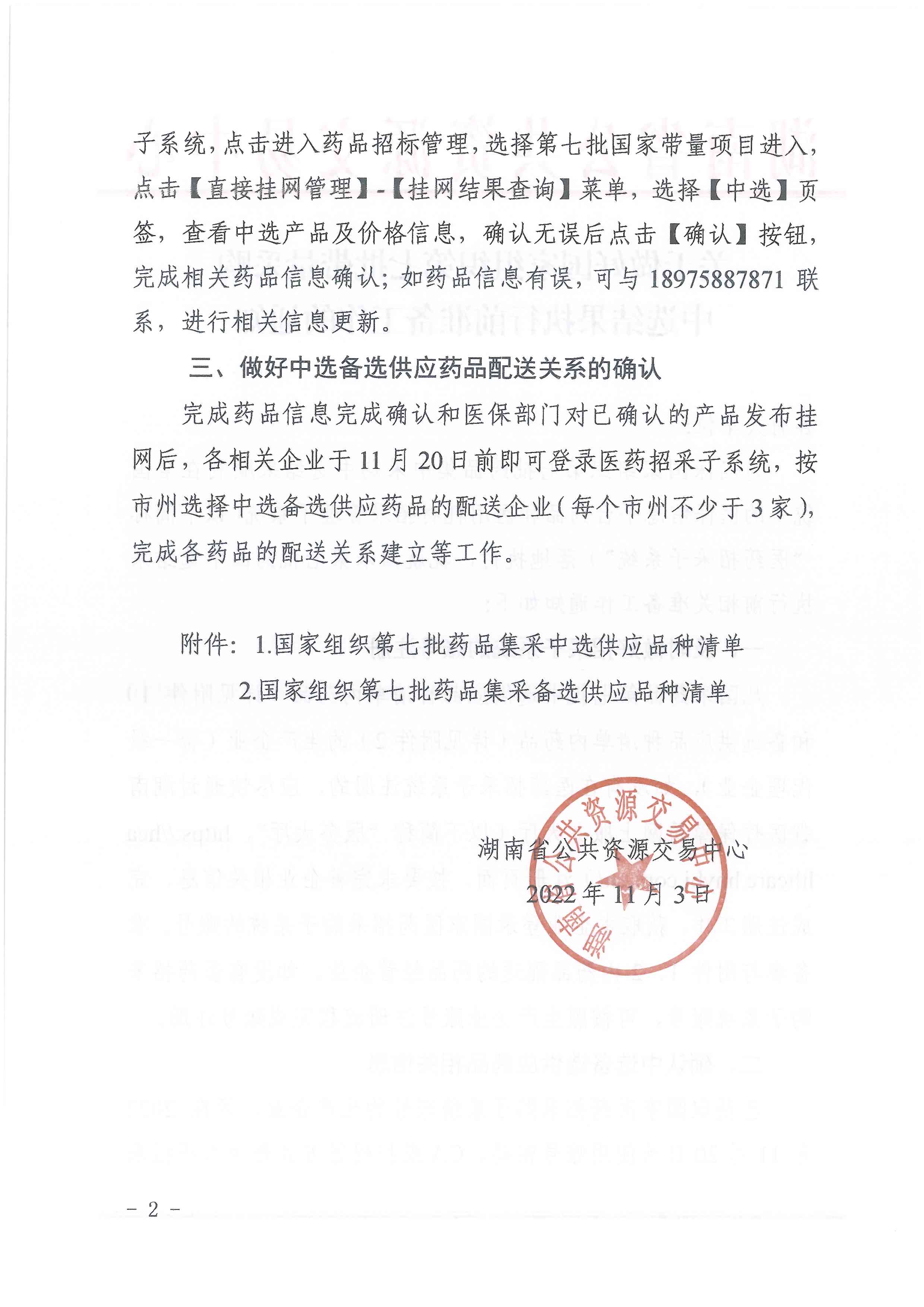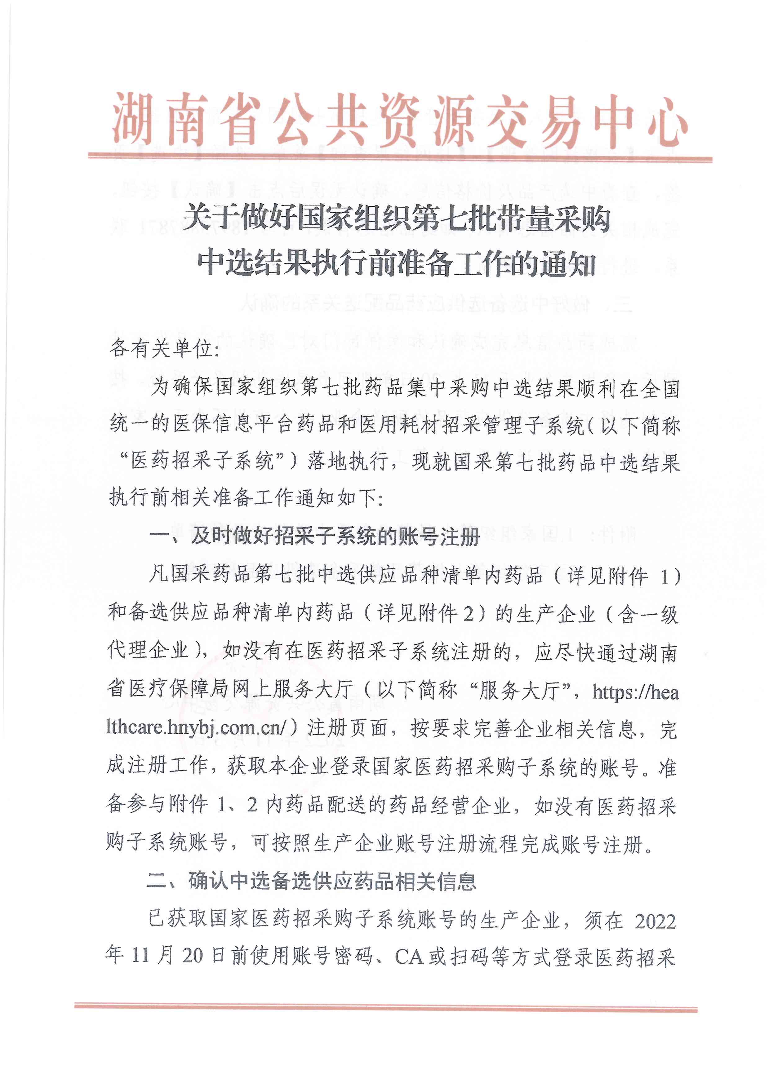 【湖南】关于做好国家组织第七批带量采购中选结果执行前准备工作的通知