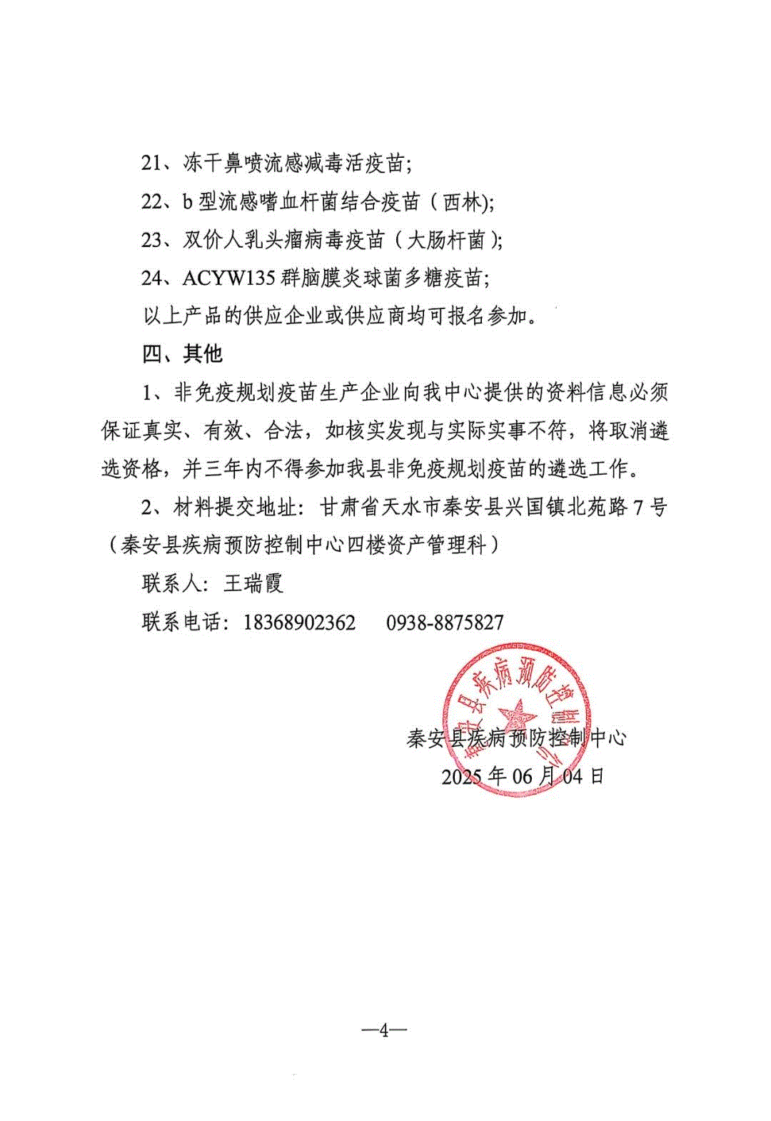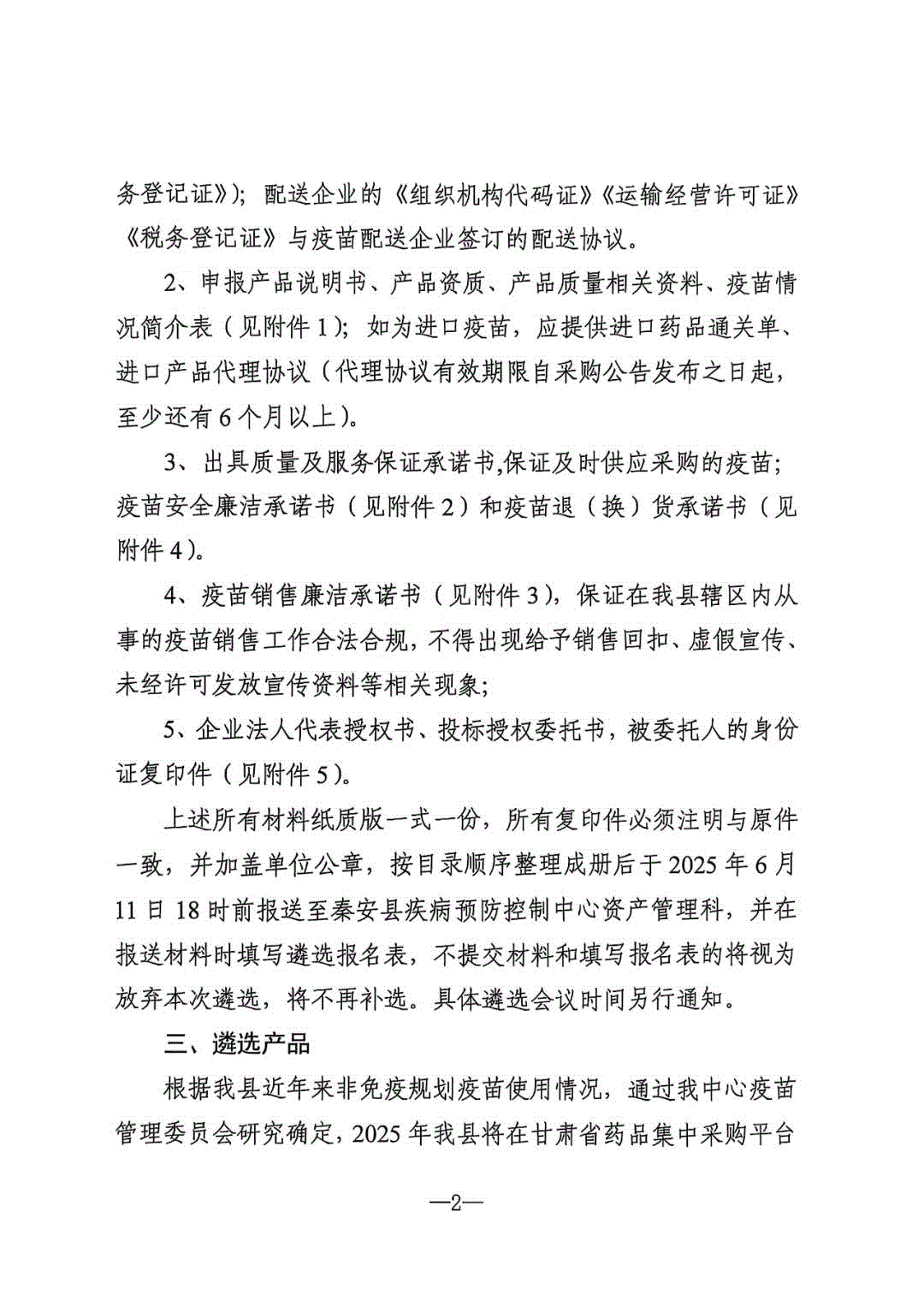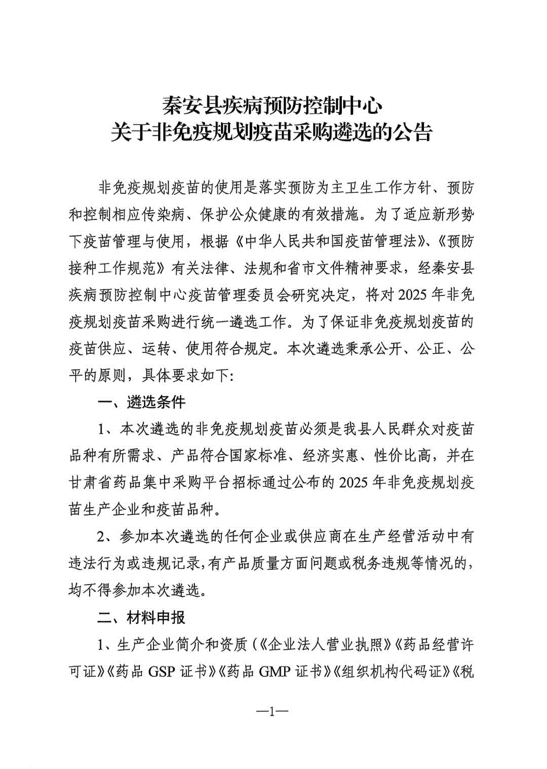 【天水】秦安县疾病预防控制中心关于非免疫规划疫苗采购遴选的公告
