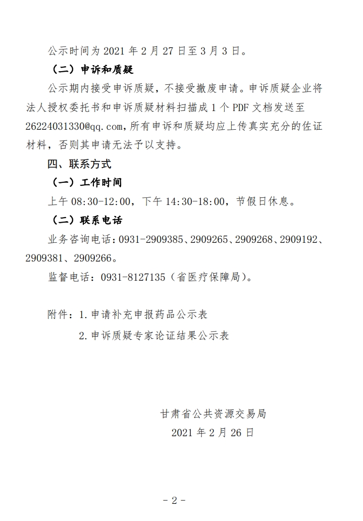 【甘肃】甘肃省关于公示2020年药品集中采购动态调整补充申报和专家论证结果的通知