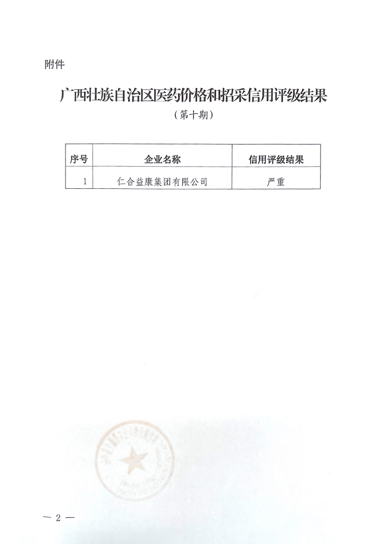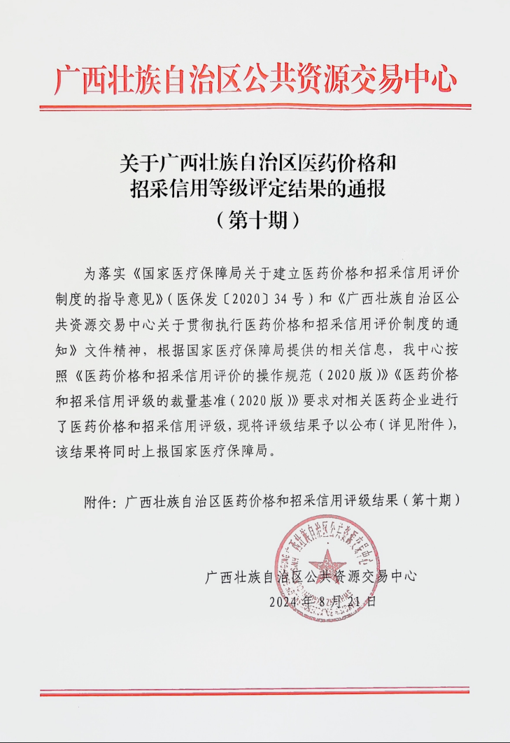 【广西】关于广西壮族自治区医药价格和招采信用等级评定结果的通报(第十期)