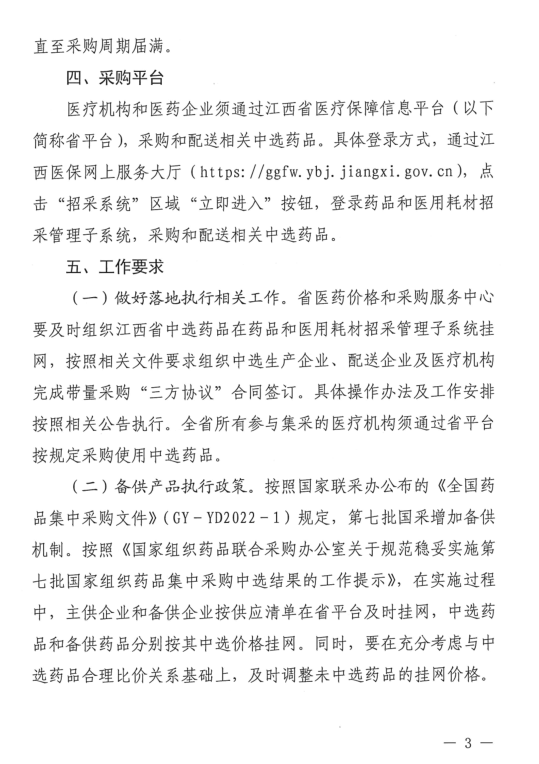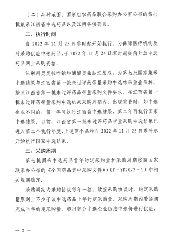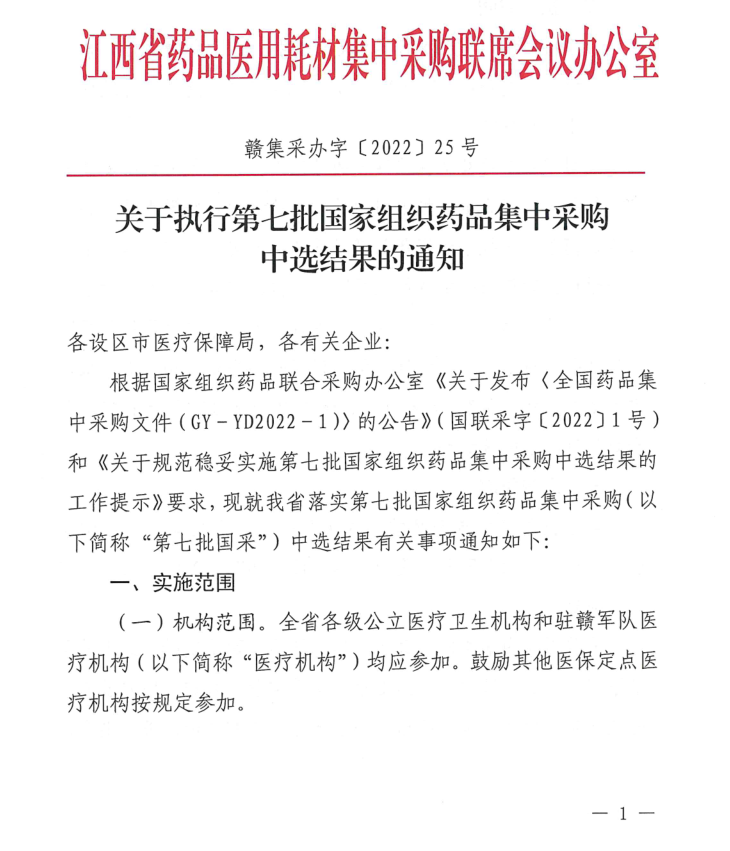 【江西】关于执行第七批国家组织药品集中采购中选结果的通知