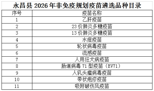 永昌县2026年非免疫规划疫苗遴选品种目录