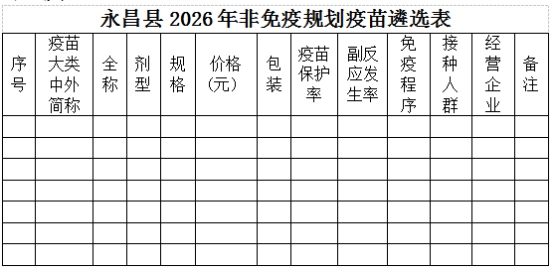 永昌县2026年非免疫规划疫苗遴选表