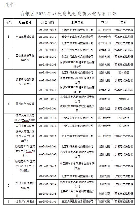 【白银】白银区2025年非免疫规划疫苗遴选结果公示