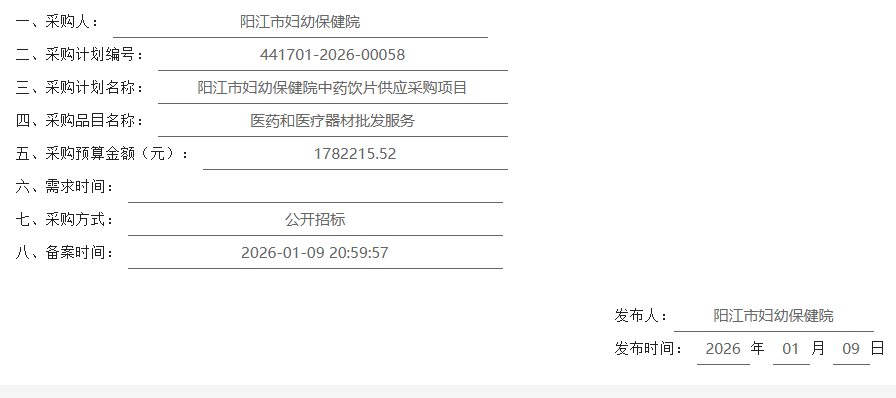 【阳江市妇幼保健院】广东省阳江市妇幼保健院中药饮片供应采购项目