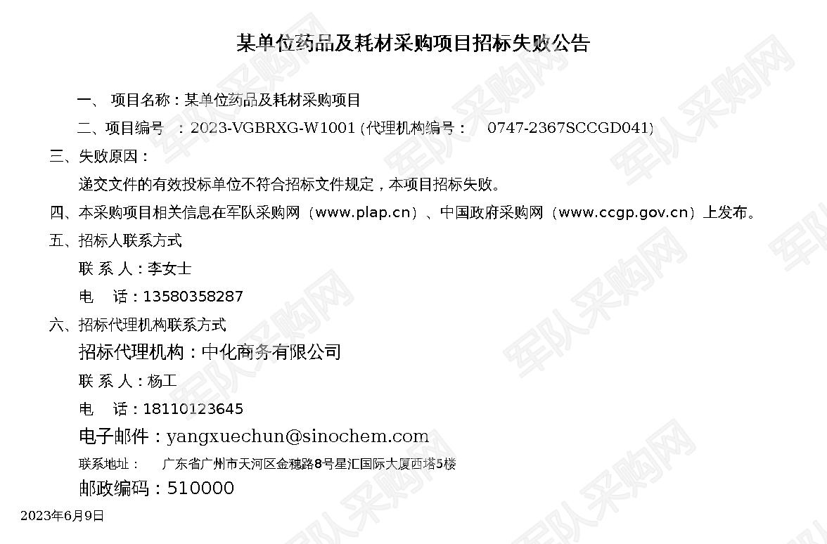 【军队采购】军队采购网某单位药品及耗材采购项目2023-VGBRXG-W1001