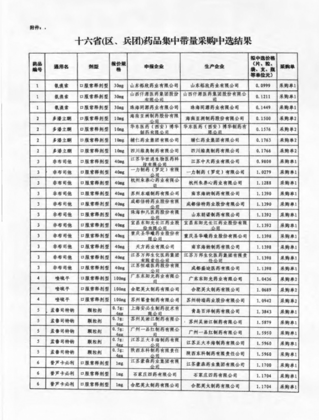 十六省药品联盟集中带量采购中选的22个品种(即第三、五批国家集采药品协议期满品种,详见附件)。