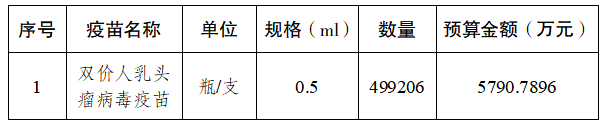 根据《中华人民共和国疫苗管理法》《中华人民共和国政府采购法》《江苏省群体性预防接种疫苗采购实施方案(2022版)》《关于组织采购群体性预防接种双价HPV疫苗的函》的相关要求,对双价人乳头瘤病毒疫苗集中采购,现将有关事项公告如下: