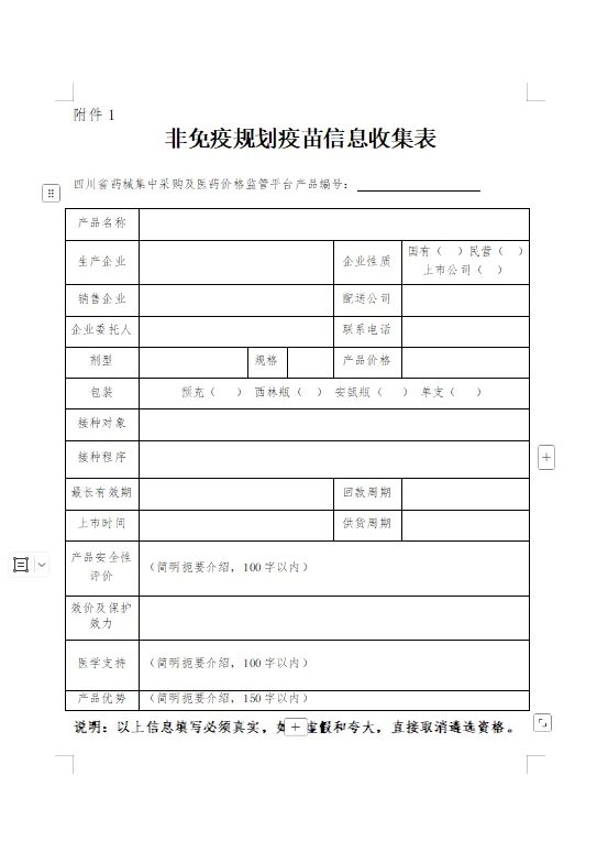 我中心决定公开增补遴选非免疫规划疫苗品种及供应商,请有意向并新纳入四川省药械集中采购及医药价格监管平台的疫苗产品厂家提交相关资质资料。现将有关事项通知如下。