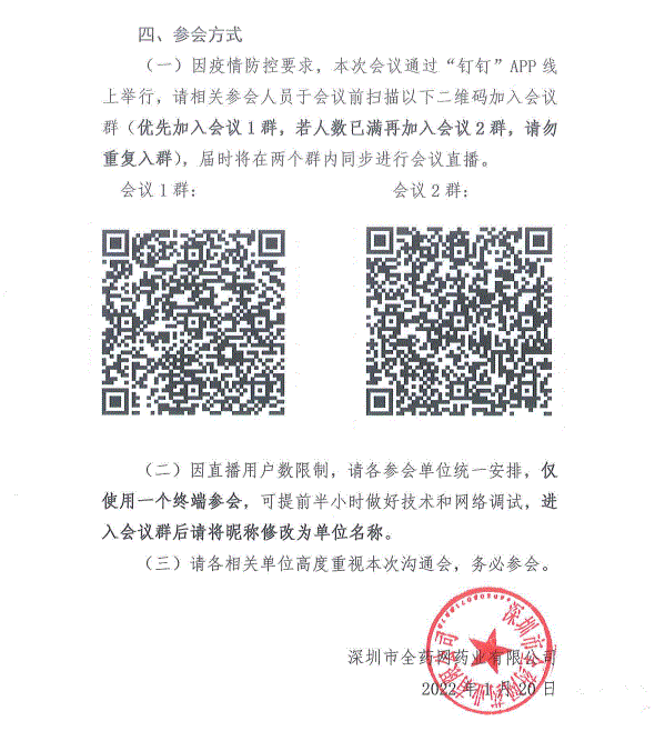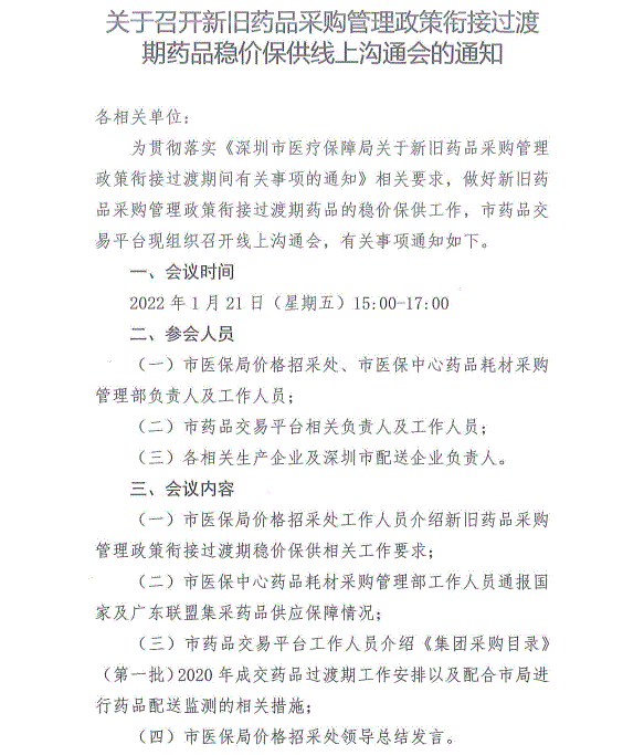 【深圳】全药网关于召开新旧药品采购管理政策衔接过渡期药品稳价保供线上沟通会的通知