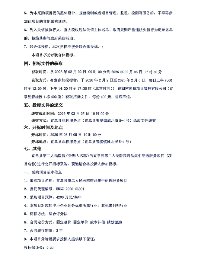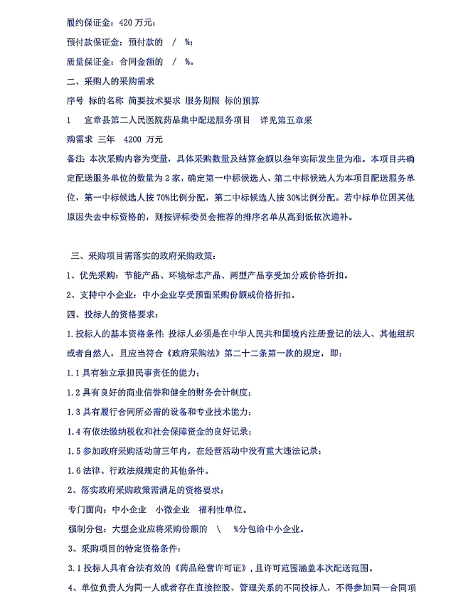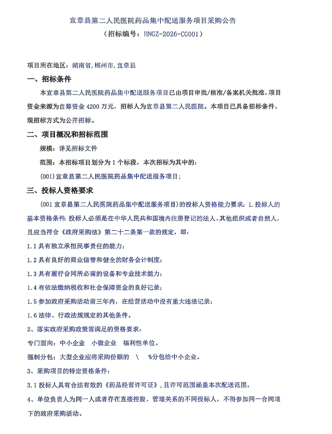 【郴州市宜章县第二人民医院】湖南省郴州市宜章县第二人民医院药品集中配送服务项目采购公告