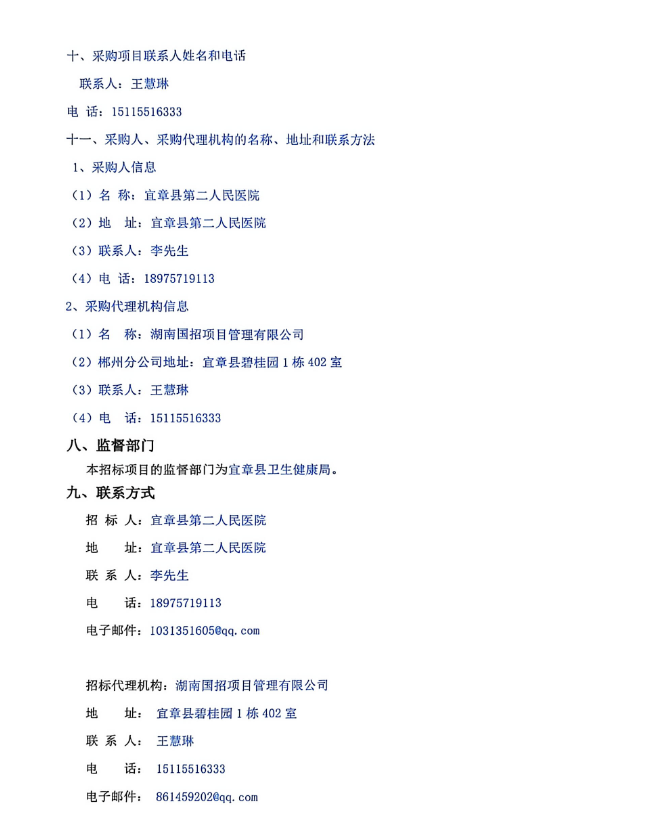 所属项目:湖南省郴州市宜章县第二人民医院院