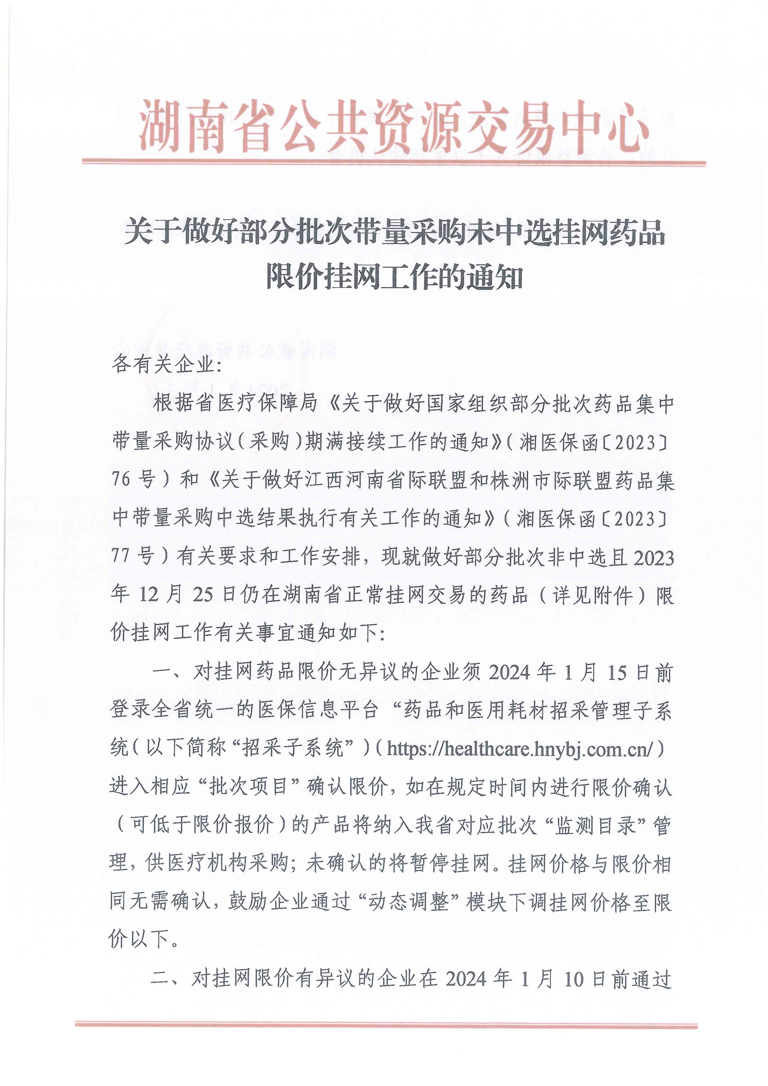【湖南】关于做好部分批次带量采购未中选挂网药品限价挂网工作的通知