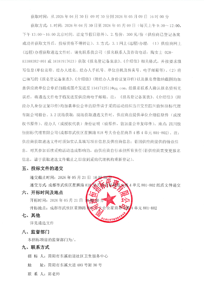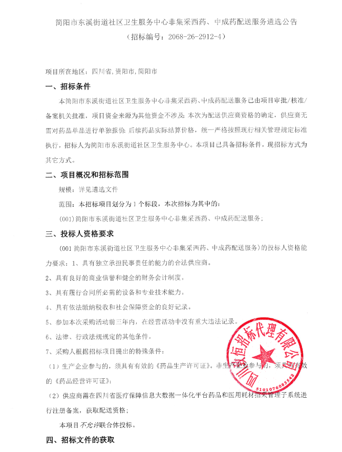 【成都市简阳市东溪街道社区卫生服务中心】四川省简阳市东溪街道社区卫生服务中心非集采西药、中成药配送服务遴选公告