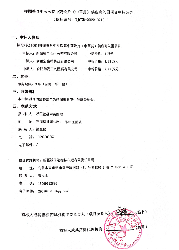 【呼图壁县中医医院】新疆维吾尔自治区昌吉回族自治州呼图壁县中医医院中药饮片(中草药)供应商入围项目中标公告