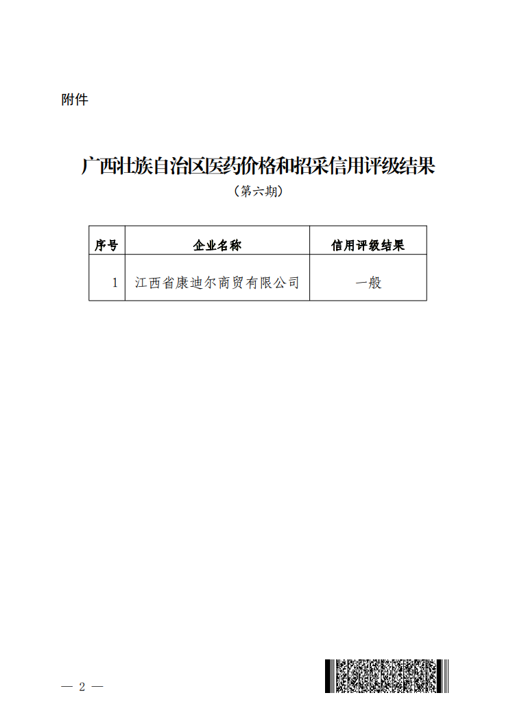 附件:广西壮族自治区医药价格和招采信用评级结果(第六期)