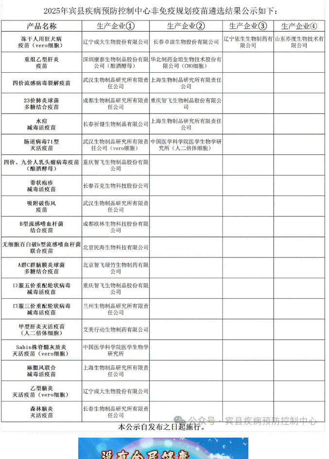 【哈尔滨】2025年宾县疾病预防控制中心非免疫规划疫苗遴选结果公示