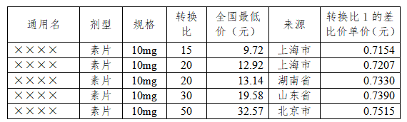 取计算基准价按包装数量差比价规则,换算浙江省在线交易各转换比的价格,以该价格与浙江省现在线交易价格进行比较,取低值价格填报价格和来源省份。