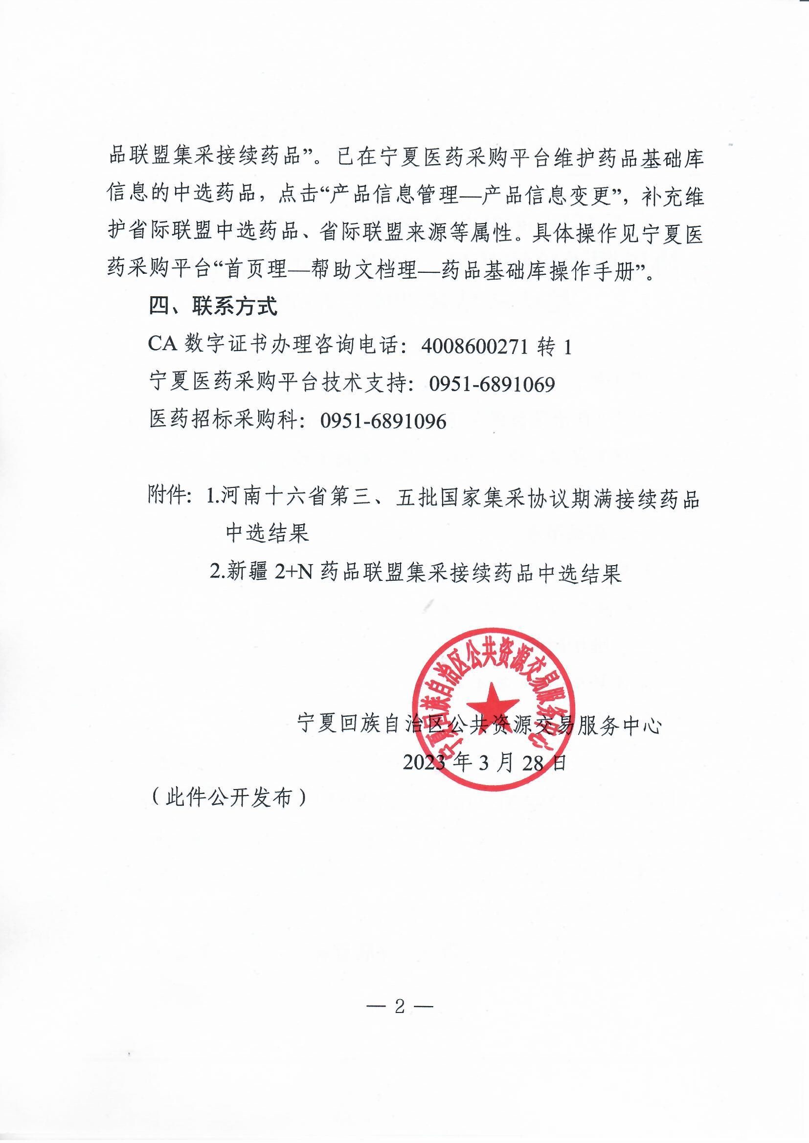 2.新疆2+N药品联盟集采接续药品中选结果