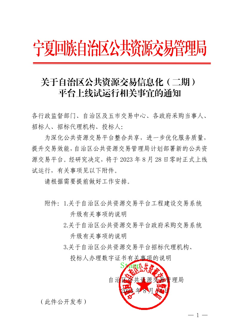 【宁夏】关于自治区公共资源交易信息化(二期)平台上线运行相关事宜的通知