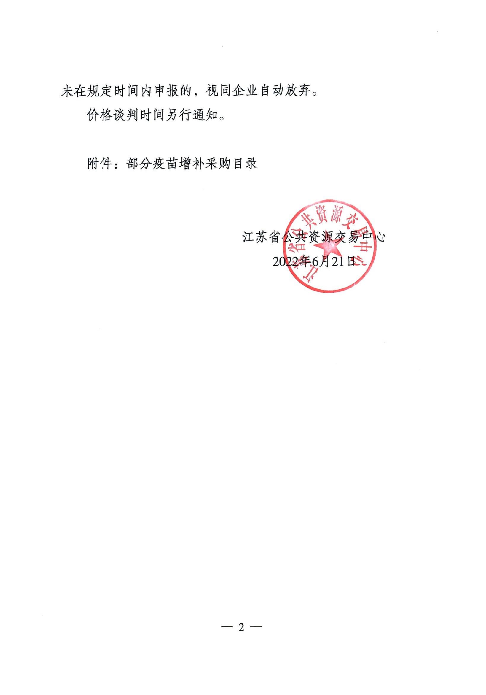 【江苏】省公共资源交易中心关于开展部分疫苗增补采购工作的通知