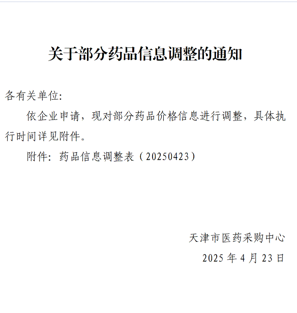 【天津】天津市关于部分药品信息调整的通知(20250423)