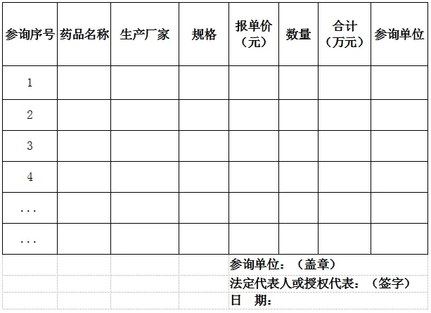 参询企业可就询价采购抗结核药品项目中某类产品或全部产品进行参询报价,报价表每个参询产品分开填报。