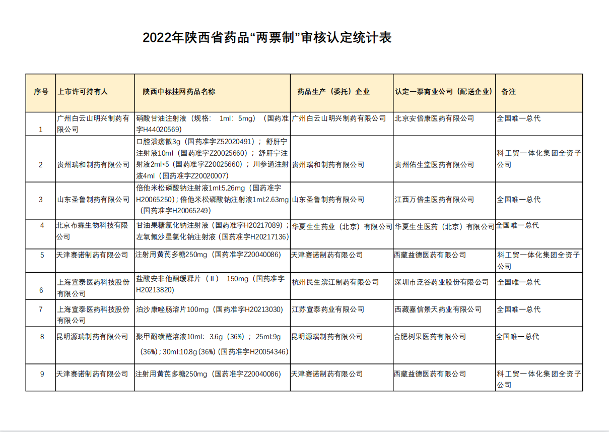 【陕西】关于转发陕西省卫健委《关于对 2022年陕西省药品生产企业两票制”审核认定的函》的通知