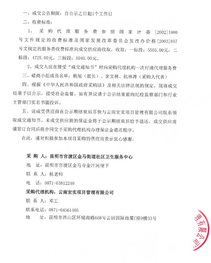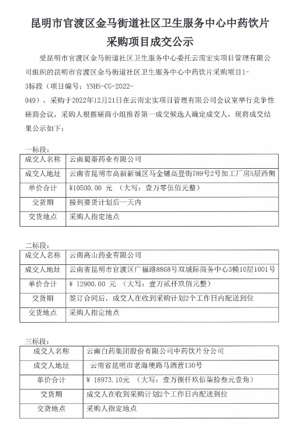 【昆明市官渡区金马街道社区卫生服务中心】云南省昆明市官渡区金马街道社区卫生服务中心中药饮片采购项目成交公示