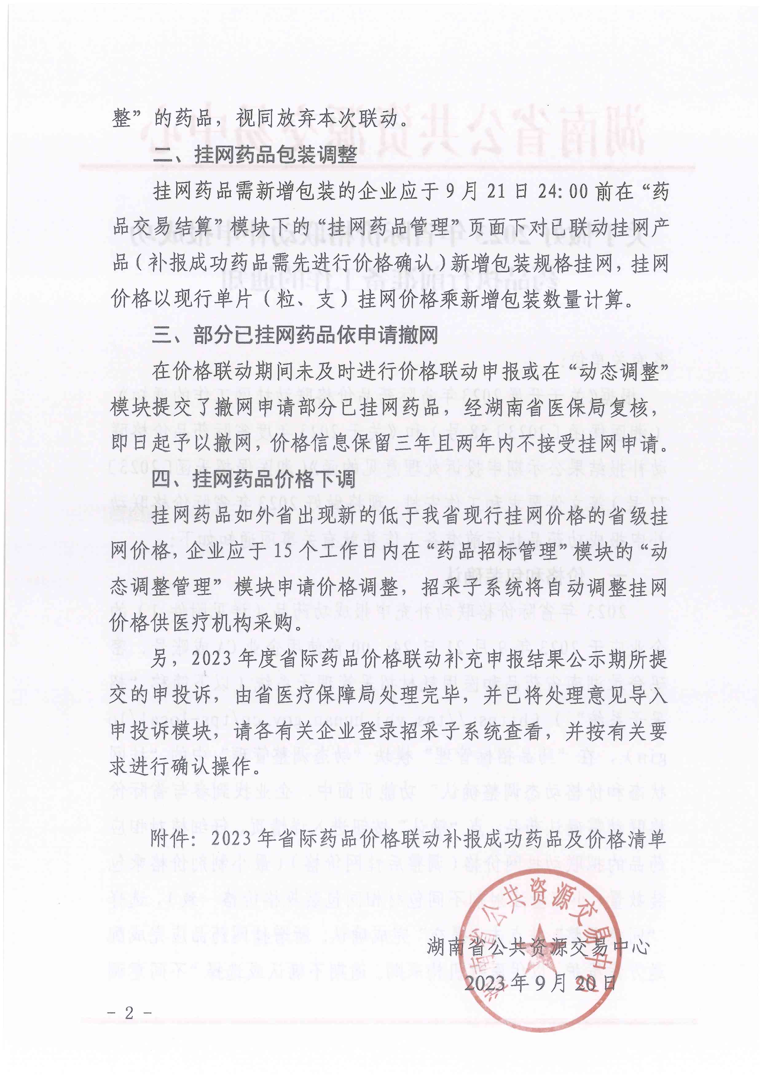 根据《关于开展2023年省际药品价格联动挂网工作的通知》(湘医保函〔2023〕58号)和《关于2023年度省际药品价格联动补报结果公示期申投诉处理意见的函》(湘医保招采函〔2023)77号)等文件要求和工作安排,现将做好2023年省际价格联动补申报成功药品执行前准备工作并就有关事项通知如下: