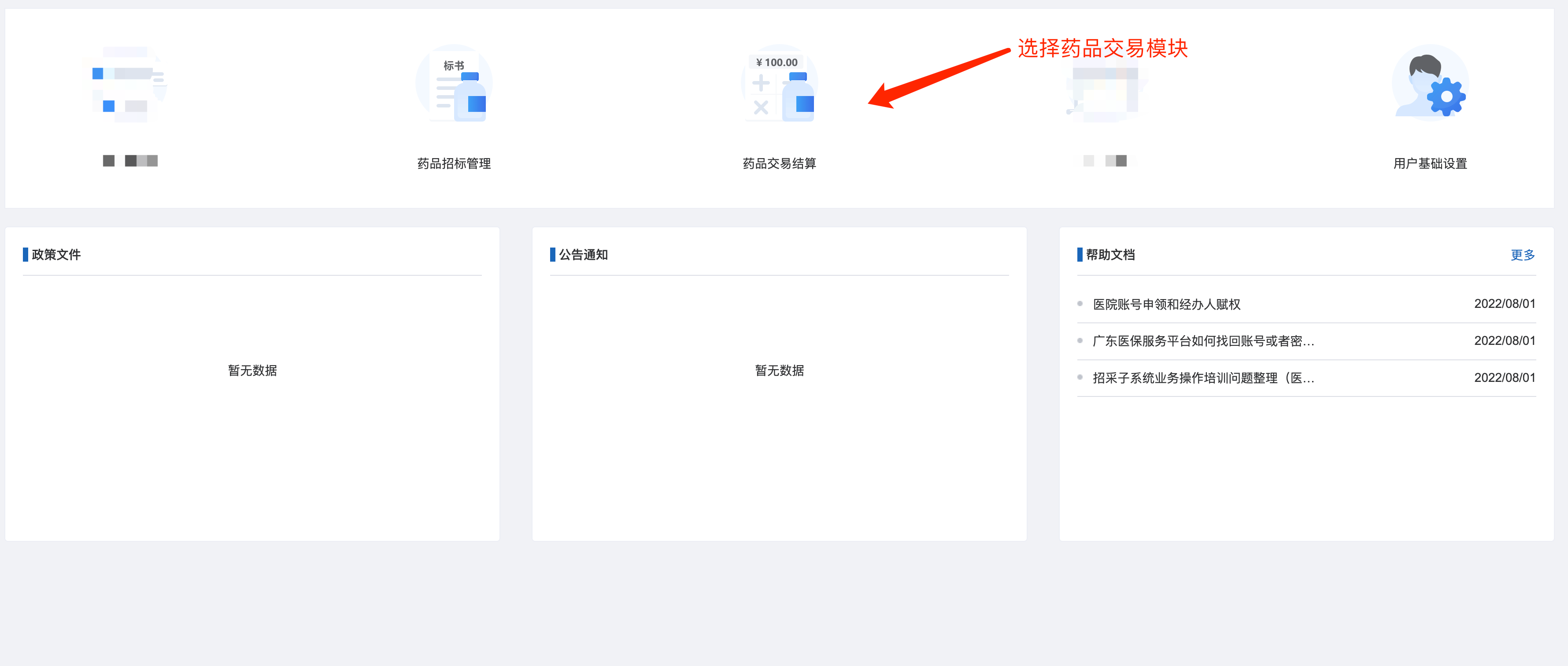 3、医疗机构登录招采子系统,进入【药品交易结算模块】