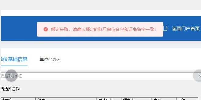1.“绑定失败,请确认绑定的账号单位名字和证书名字一致 ”