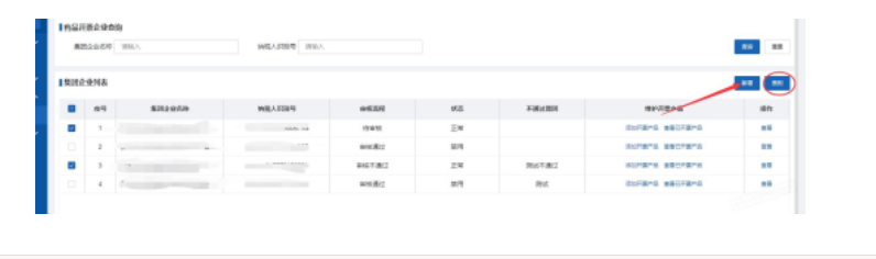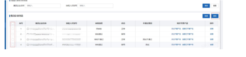 2. 集团内企业管理——生产集团企业列表选择想要禁用的企业(只能对审核通过且无开票药品的集团企业进行禁用)