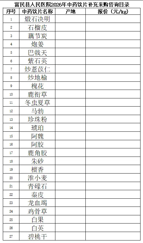 一、项目名称:富民县人民医院2026年中药饮片补充采购市场调研。