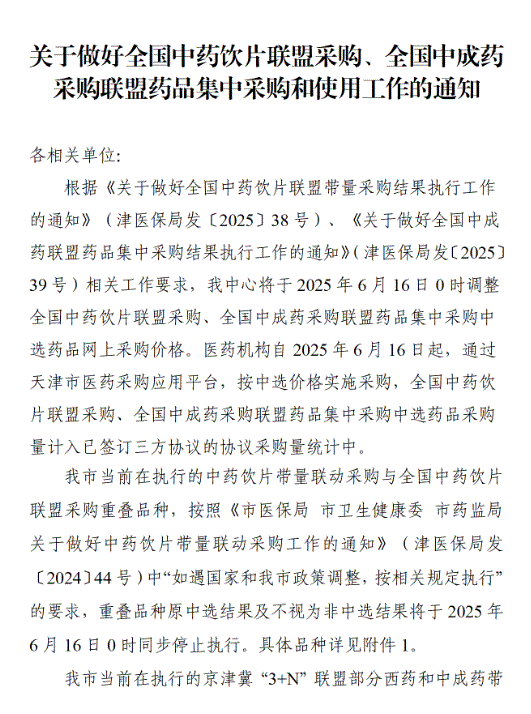 【天津】天津市关于做好全国中药饮片联盟采购、全国中成药采购联盟药品集中采购和使用工作的通知